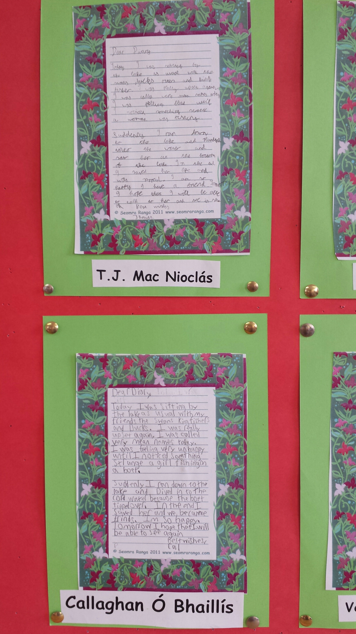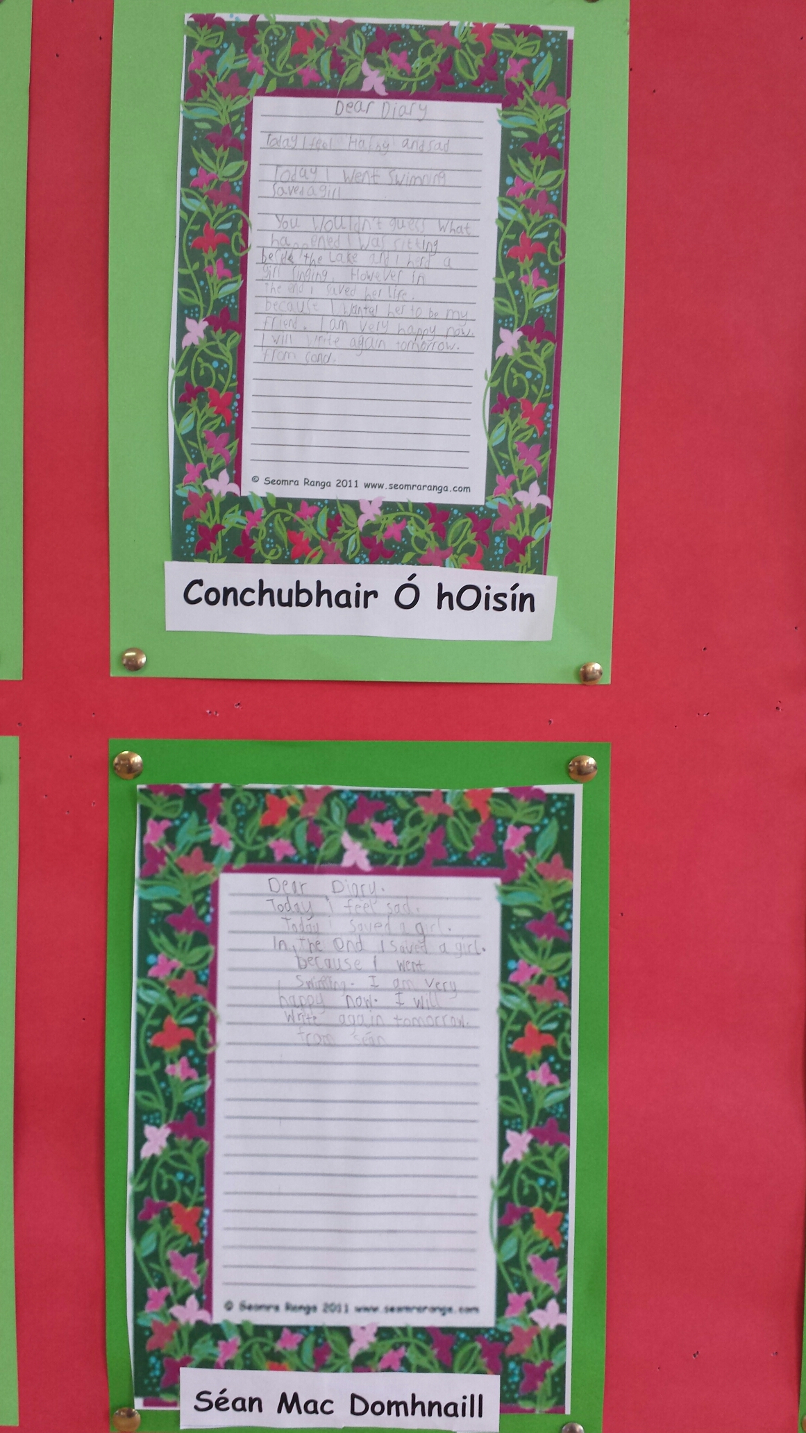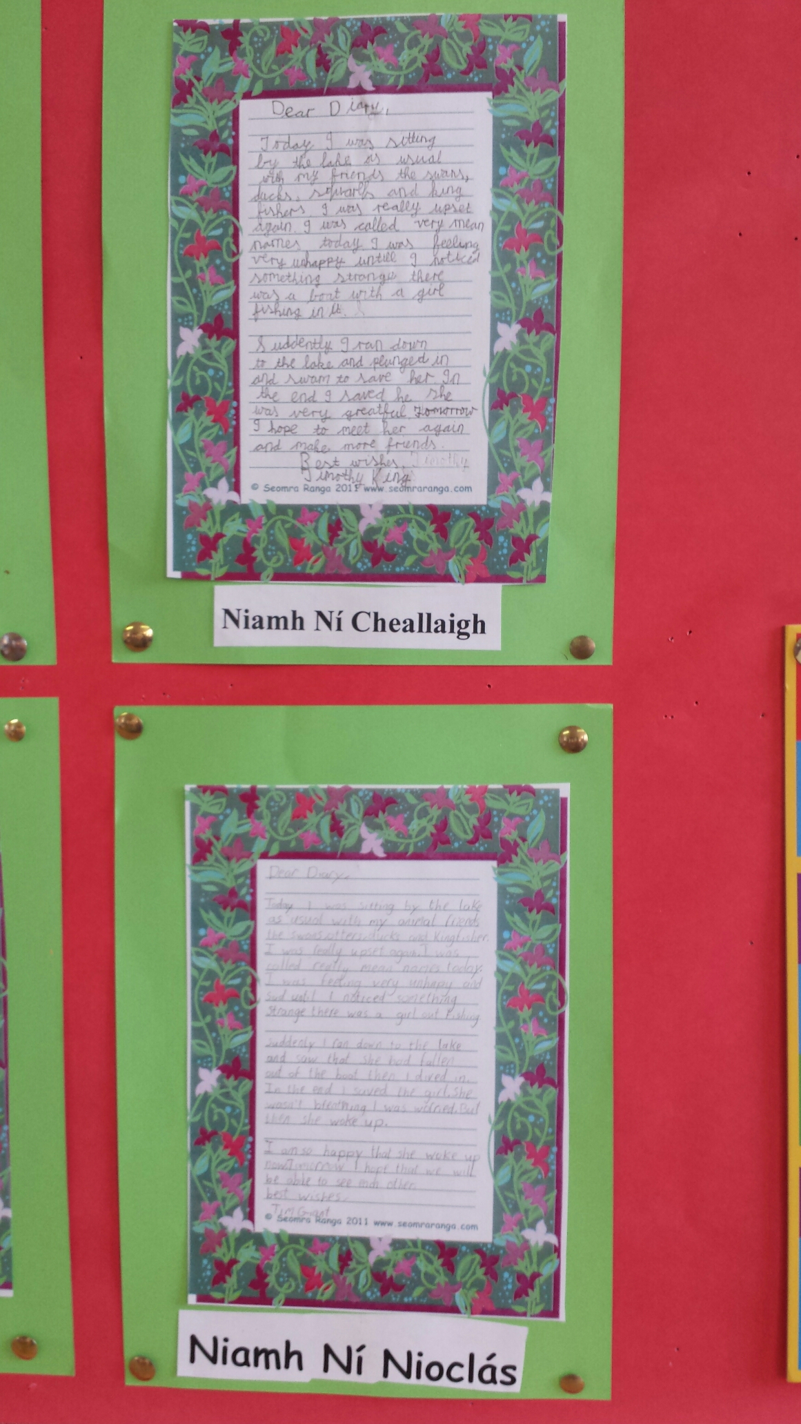 When we had drafted, edited and revised our diary entries, Miss Ní Mhaicín gave us some colourful writing frames to publish our work.