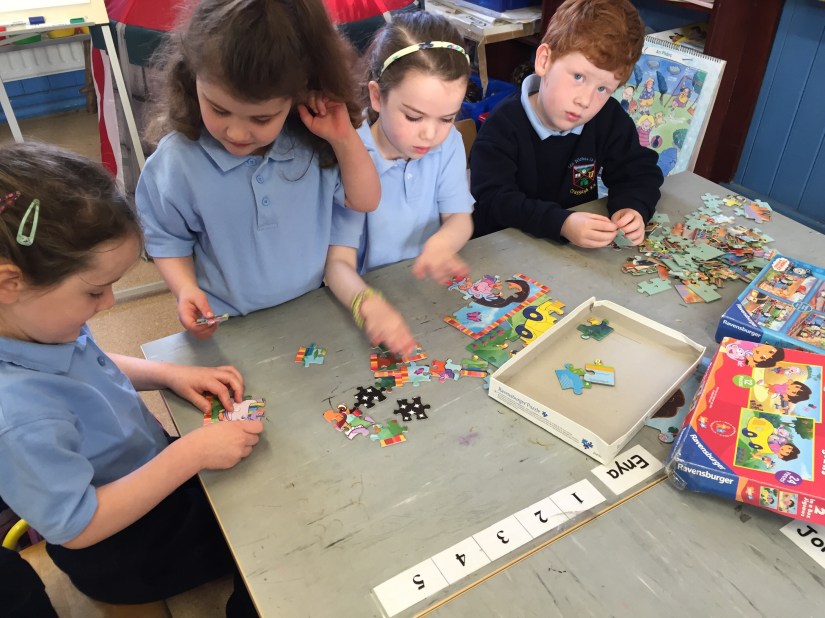 Our infants are very busy this morning, working collaboratively to make their puzzles.