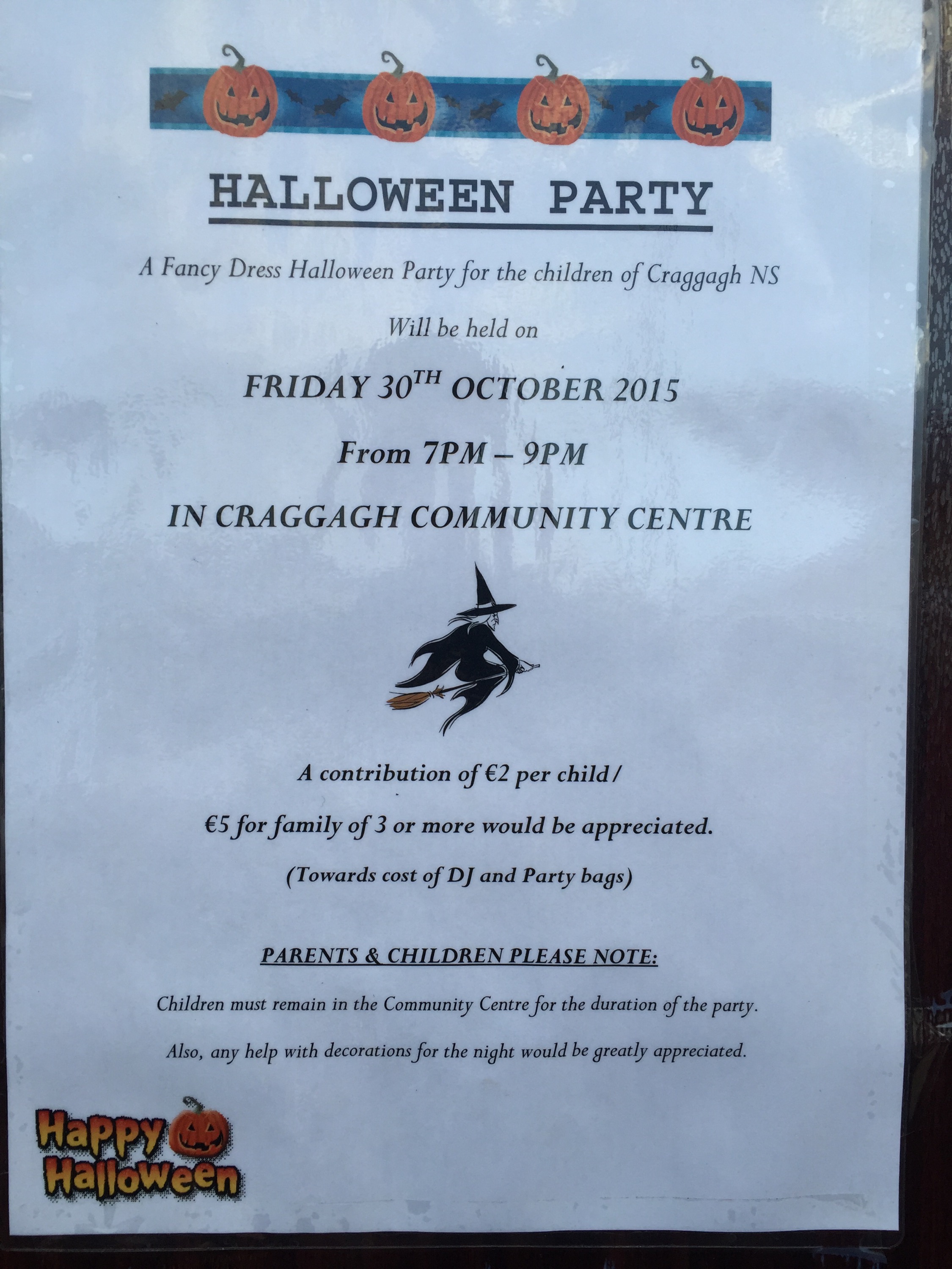 School NewsHallowe’en Party October 22, 2015 craggaghns Hallowe’en party organised by our Parent Association will take place on Friday, Oct 30th in the Community Centre &7pm. Also, don’t forget to wear your Hallowe’en costume to school tomorrow, Friday 23rd too! Share this: Click to share on X (Opens in new window) X Click to share on Facebook (Opens in new window) Facebook Like Loading...