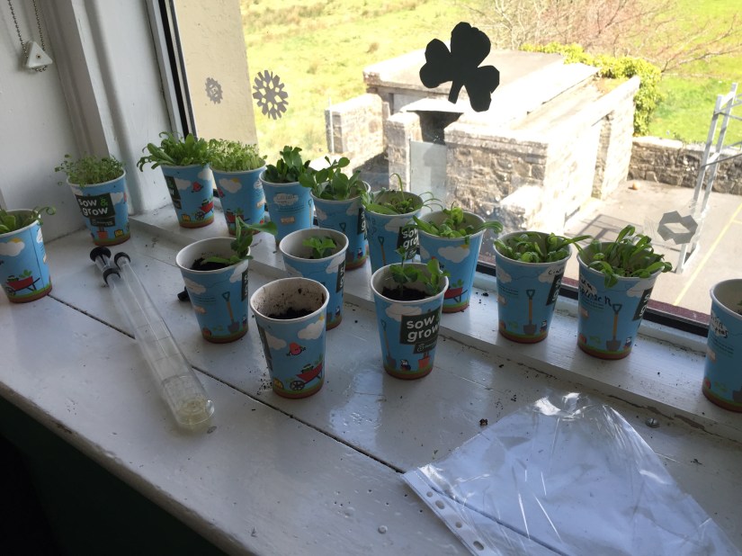 We sampled some of our greenery today! The peas and spinach were an absolute hit, but the cress received a mixed reaction!