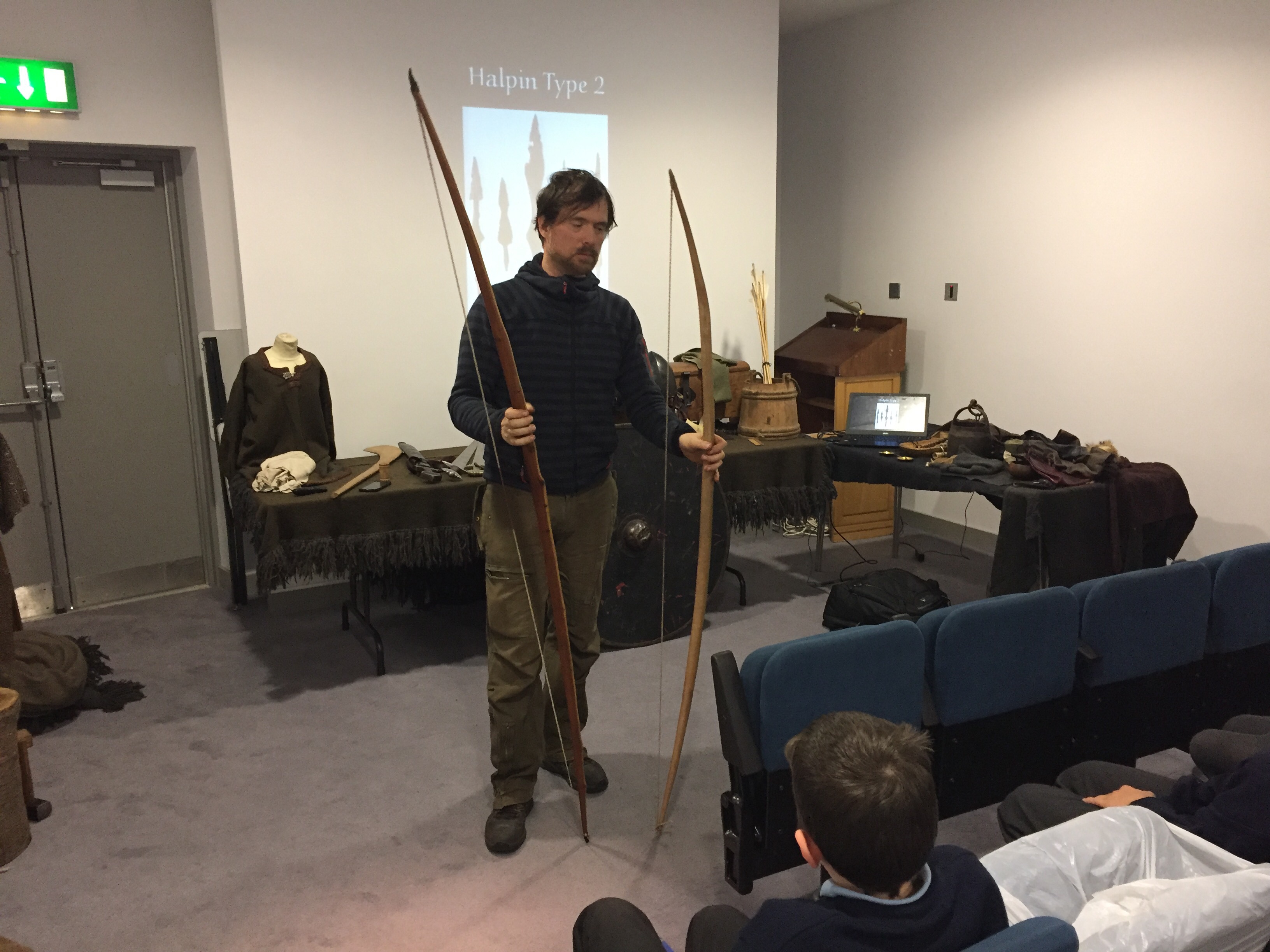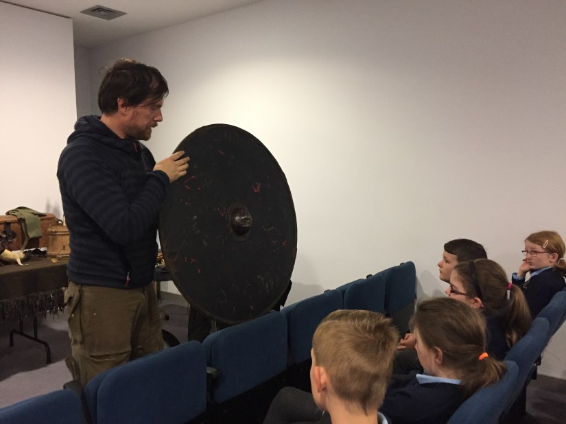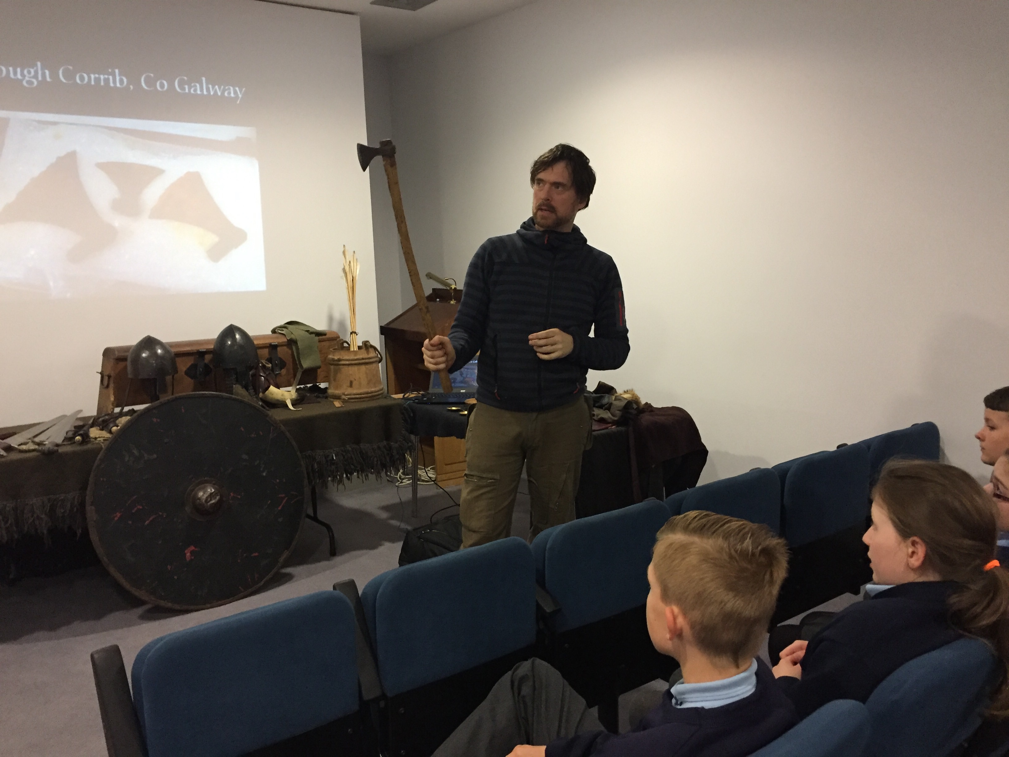 The children from 3rd to 6th experienced a wonderful workshop, facilitated by Dave Swift of Claiomh on Tuesday last, Oct 18th, all about Vikings and in particular their clothing and weaponry.