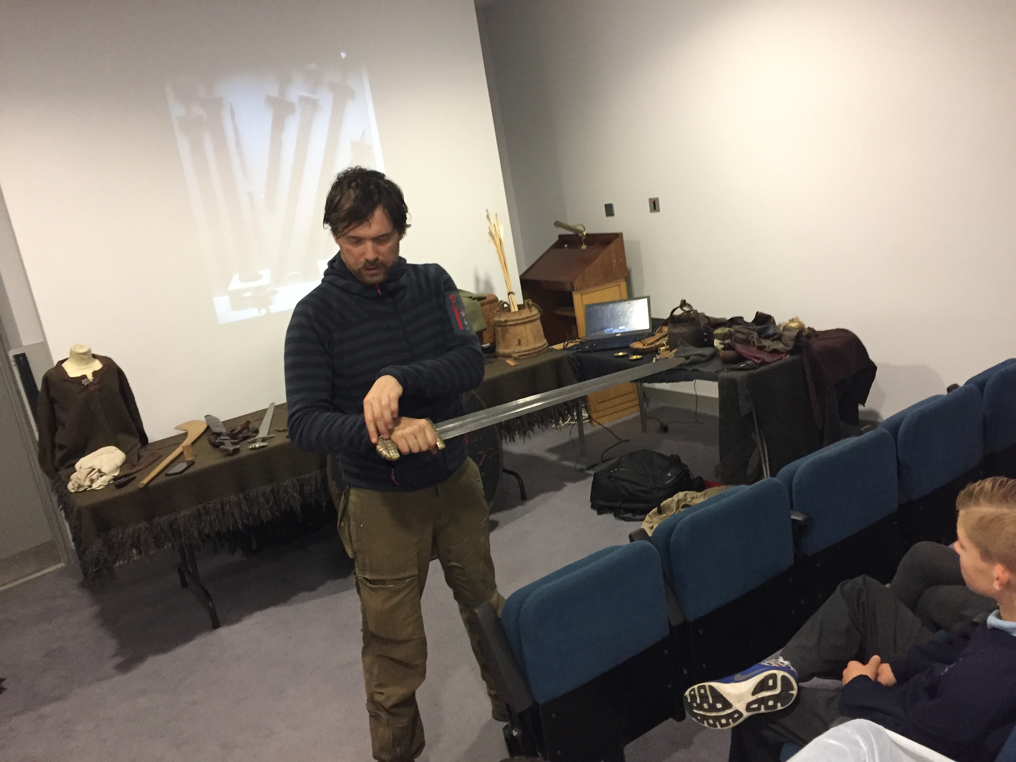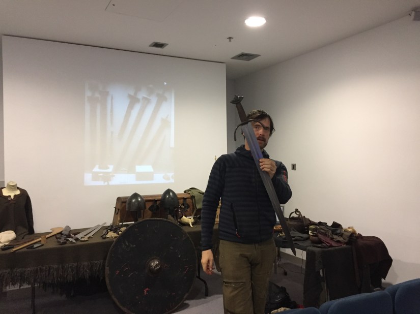 We are very grateful to Dave Swift for his most informative talk and for allowing us to handle samples of Viking weapons and clothing. David’s website is here: Claíomh